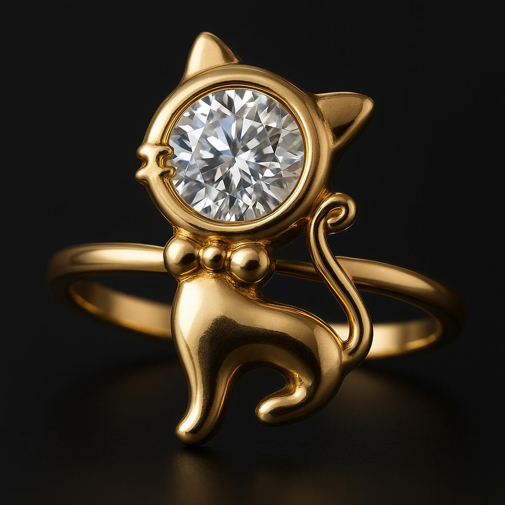 Whimsical and radiant, Feliora ring is a premium artificial ring that fuses charm with luxury. Designed in the shape of a graceful cat, it features a brilliant round-cut cubic zirconia centerpiece framed in polished gold plating. This artistic design captures both elegance and playfulness, making it an ideal statement piece for cat lovers and style enthusiasts alike. Perfect for gifting or adding a unique sparkle to your collection, Feliora is a true blend of creativity and sophistication.